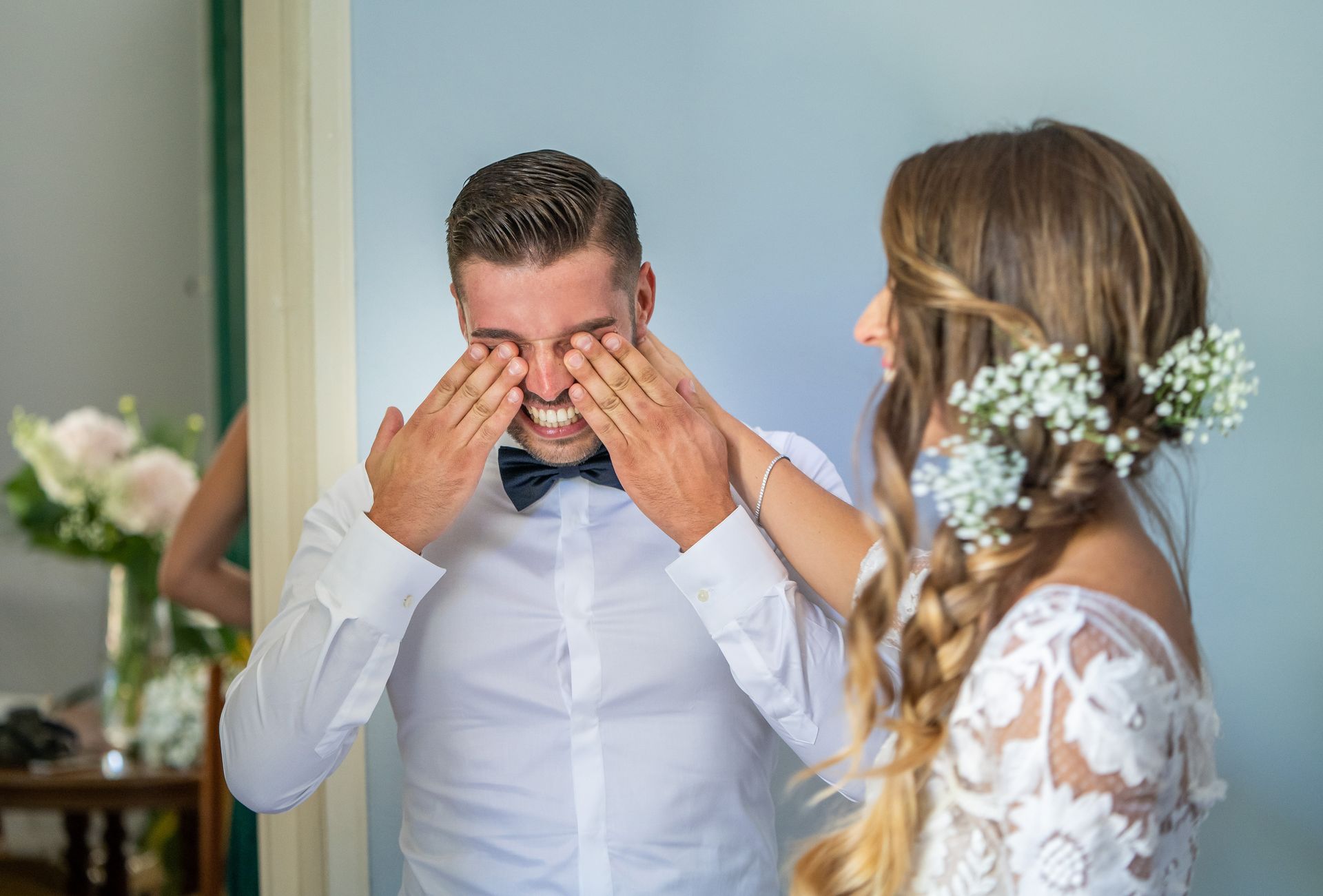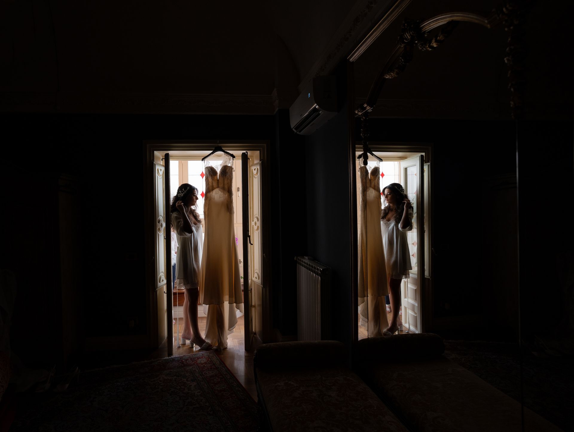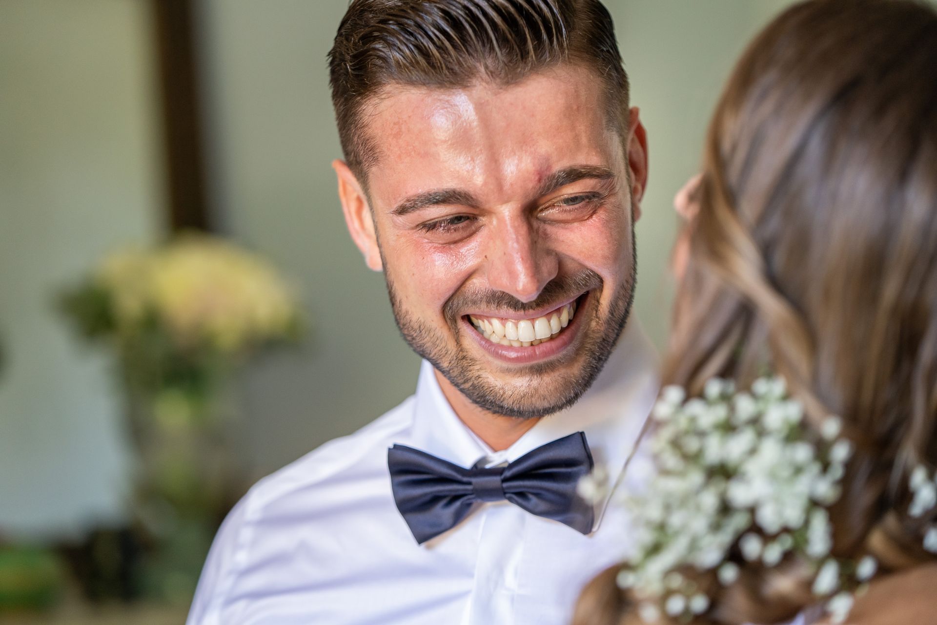 Poi, c'è lui, lo sposo, circondato da amici e familiari, che si prepara a intraprendere il passo più significativo della sua vita. La tensione è palpabile, ma così è l'amore e l'orgoglio nei suoi occhi. Le sue mani, forse per la prima volta, tremano leggermente mentre indossa ila giacca. Anche qui, tra risate e scherzi, la mia macchina fotografica si fa testimone silenziosa di momenti indimenticabili.