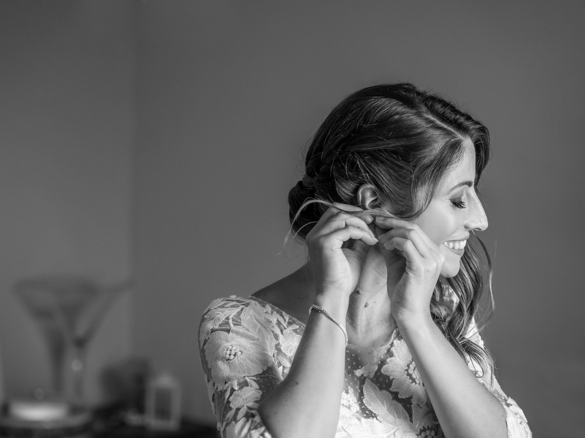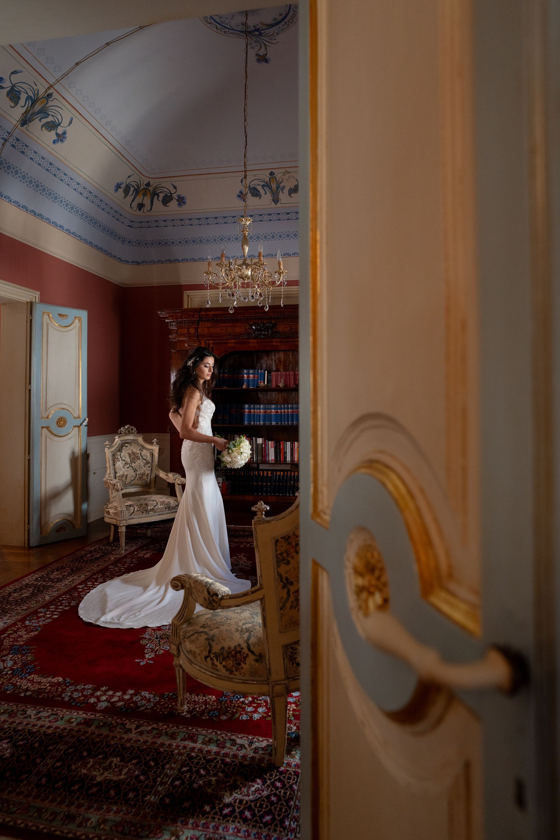 La mattinata inizia con i preparativi: il delicato trucco che accarezza il viso della sposa, le risate nervose che riempiono la stanza, gli sguardi complici tra amiche e parenti. Questi momenti, apparentemente tranquilli, sono carichi di emozione pura. Catturo ogni dettaglio, dalla luce che illumina il volto della sposa allo scintillio delle sue gioie, perché so che questi istanti preludono al culmine della giornata.